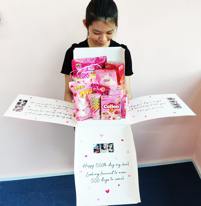 Snacks Box Pink Exterior Snacks Box With Photos And Lights Customised Helium Balloon Delivery Singapore Party Shop Bobo Chacha